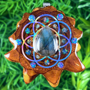 Our handmade pendants are crafted from sustainably wild-gathered Knobcone Pinecones. Every Aura Pinecone is carefully dried, aged, and cross-sectioned before being meticulously designed.