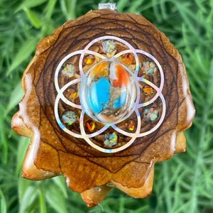 Spiny Oyster Turquoise with Crushed Opal & Seed of Life