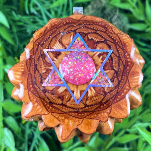 Our handmade pendants are crafted from sustainably wild-gathered Knobcone Pinecones. Every Aura Pinecone is carefully dried, aged, and cross-sectioned before being meticulously designed.