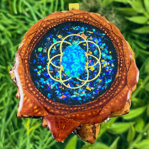 Our handmade pendants are crafted from sustainably wild-gathered Knobcone Pinecones. Every Aura Pinecone is carefully dried, aged, and cross-sectioned before being meticulously designed.