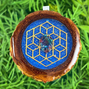 Our handmade pendants are crafted from sustainably wild-gathered Knobcone Pinecones. Every Aura Pinecone is carefully dried, aged, and cross-sectioned before being meticulously designed.
