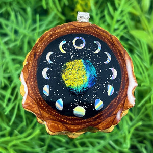 Our handmade pendants are crafted from sustainably wild-gathered Knobcone Pinecones. Every Aura Pinecone is carefully dried, aged, and cross-sectioned before being meticulously designed.