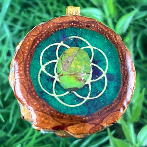 Our handmade pendants are crafted from sustainably wild-gathered Knobcone Pinecones. Every Aura Pinecone is carefully dried, aged, and cross-sectioned before being meticulously designed.