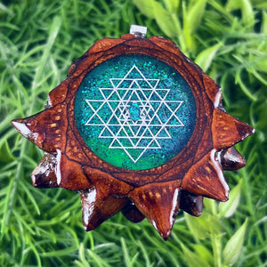 Our handmade pendants are crafted from sustainably wild-gathered Knobcone Pinecones. Every Aura Pinecone is carefully dried, aged, and cross-sectioned before being meticulously designed.