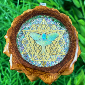 Our handmade pendants are crafted from sustainably wild-gathered Knobcone Pinecones. Every Aura Pinecone is carefully dried, aged, and cross-sectioned before being meticulously designed.