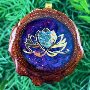 Our handmade pendants are crafted from sustainably wild-gathered Knobcone Pinecones. Every Aura Pinecone is carefully dried, aged, and cross-sectioned before being meticulously designed.