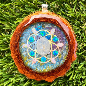 Our handmade pendants are crafted from sustainably wild-gathered Knobcone Pinecones. Every Aura Pinecone is carefully dried, aged, and cross-sectioned before being meticulously designed.