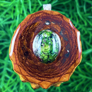 Our handmade pendants are crafted from sustainably wild-gathered Knobcone Pinecones. Every Aura Pinecone is carefully dried, aged, and cross-sectioned before being meticulously designed.