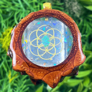 Our handmade pendants are crafted from sustainably wild-gathered Knobcone Pinecones. Every Aura Pinecone is carefully dried, aged, and cross-sectioned before being meticulously designed.