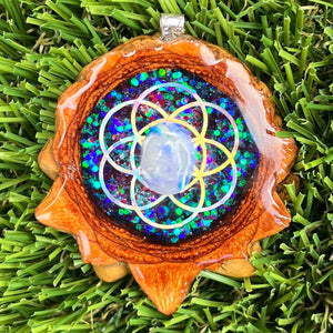 Our handmade pendants are crafted from sustainably wild-gathered Knobcone Pinecones. Every Aura Pinecone is carefully dried, aged, and cross-sectioned before being meticulously designed.