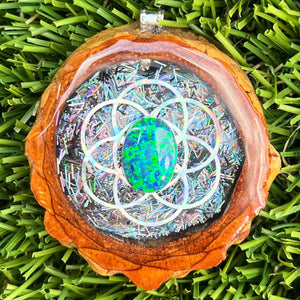 Our handmade pendants are crafted from sustainably wild-gathered Knobcone Pinecones. Every Aura Pinecone is carefully dried, aged, and cross-sectioned before being meticulously designed.
