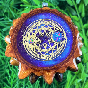 Our handmade pendants are crafted from sustainably wild-gathered Knobcone Pinecones. Every Aura Pinecone is carefully dried, aged, and cross-sectioned before being meticulously designed.