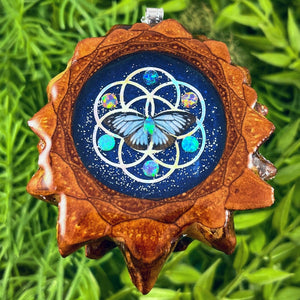 Our handmade pendants are crafted from sustainably wild-gathered Knobcone Pinecones. Every Aura Pinecone is carefully dried, aged, and cross-sectioned before being meticulously designed.