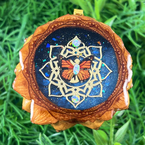Our handmade pendants are crafted from sustainably wild-gathered Knobcone Pinecones. Every Aura Pinecone is carefully dried, aged, and cross-sectioned before being meticulously designed.