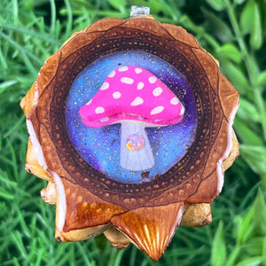 Our handmade pendants are crafted from sustainably wild-gathered Knobcone Pinecones. Every Aura Pinecone is carefully dried, aged, and cross-sectioned before being meticulously designed.