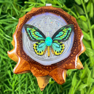 Our handmade pendants are crafted from sustainably wild-gathered Knobcone Pinecones. Every Aura Pinecone is carefully dried, aged, and cross-sectioned before being meticulously designed.