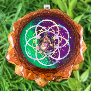Our handmade pendants are crafted from sustainably wild-gathered Knobcone Pinecones. Every Aura Pinecone is carefully dried, aged, and cross-sectioned before being meticulously designed.
