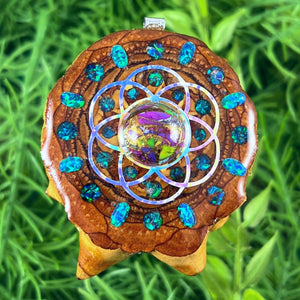 Our handmade pendants are crafted from sustainably wild-gathered Knobcone Pinecones. Every Aura Pinecone is carefully dried, aged, and cross-sectioned before being meticulously designed.
