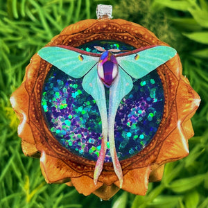 Our handmade pendants are crafted from sustainably wild-gathered Knobcone Pinecones. Every Aura Pinecone is carefully dried, aged, and cross-sectioned before being meticulously designed.