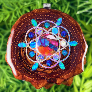 Supernova with Spiny Oyster Turquoise & Opal with Crushed Opal & Seed of Life