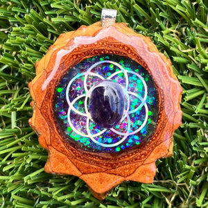 Our handmade pendants are crafted from sustainably wild-gathered Knobcone Pinecones. Every Aura Pinecone is carefully dried, aged, and cross-sectioned before being meticulously designed.
