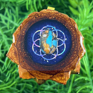 Our handmade pendants are crafted from sustainably wild-gathered Knobcone Pinecones. Every Aura Pinecone is carefully dried, aged, and cross-sectioned before being meticulously designed.