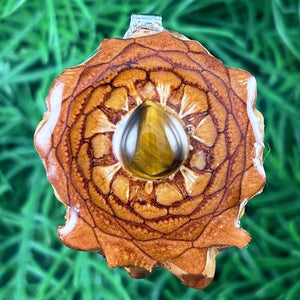 Our handmade pendants are crafted from sustainably wild-gathered Knobcone Pinecones. Every Aura Pinecone is carefully dried, aged, and cross-sectioned before being meticulously designed.
