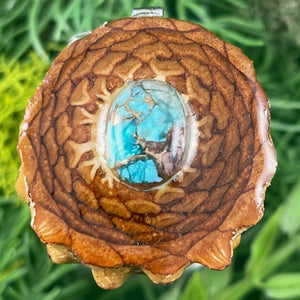 Our handmade pendants are crafted from sustainably wild-gathered Knobcone Pinecones. Every Aura Pinecone is carefully dried, aged, and cross-sectioned before being meticulously designed.
