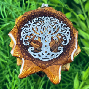 Our handmade pendants are crafted from sustainably wild-gathered Knobcone Pinecones. Every Aura Pinecone is carefully dried, aged, and cross-sectioned before being meticulously designed.