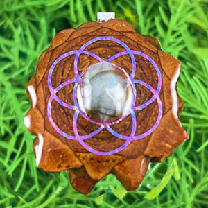 Our handmade pendants are crafted from sustainably wild-gathered Knobcone Pinecones. Every Aura Pinecone is carefully dried, aged, and cross-sectioned before being meticulously designed.
