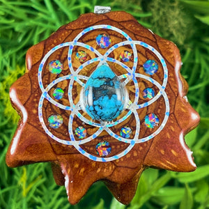 Our handmade pendants are crafted from sustainably wild-gathered Knobcone Pinecones. Every Aura Pinecone is carefully dried, aged, and cross-sectioned before being meticulously designed.
