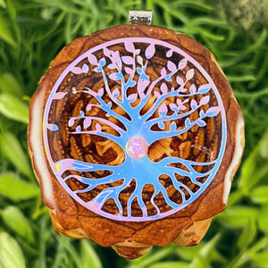 Our handmade pendants are crafted from sustainably wild-gathered Knobcone Pinecones. Every Aura Pinecone is carefully dried, aged, and cross-sectioned before being meticulously designed.