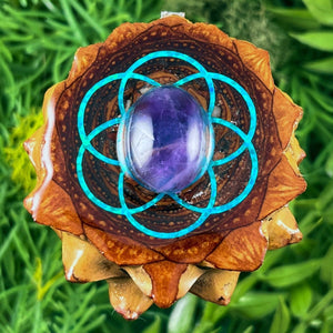 Our handmade pendants are crafted from sustainably wild-gathered Knobcone Pinecones. Every Aura Pinecone is carefully dried, aged, and cross-sectioned before being meticulously designed.