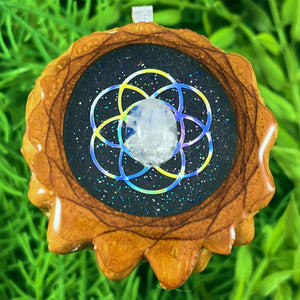 Our handmade pendants are crafted from sustainably wild-gathered Knobcone Pinecones. Every Aura Pinecone is carefully dried, aged, and cross-sectioned before being meticulously designed.
