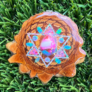 Our handmade pendants are crafted from sustainably wild-gathered Knobcone Pinecones. Every Aura Pinecone is carefully dried, aged, and cross-sectioned before being meticulously designed.
