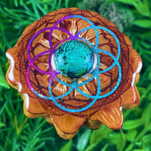 Our handmade pendants are crafted from sustainably wild-gathered Knobcone Pinecones. Every Aura Pinecone is carefully dried, aged, and cross-sectioned before being meticulously designed.