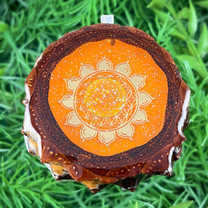 Our handmade pendants are crafted from sustainably wild-gathered Knobcone Pinecones. Every Aura Pinecone is carefully dried, aged, and cross-sectioned before being meticulously designed.