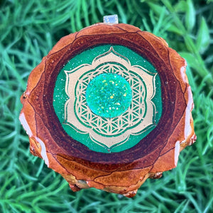 Our handmade pendants are crafted from sustainably wild-gathered Knobcone Pinecones. Every Aura Pinecone is carefully dried, aged, and cross-sectioned before being meticulously designed.
