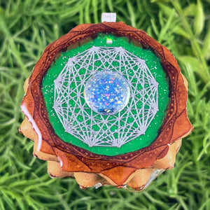 Our handmade pendants are crafted from sustainably wild-gathered Knobcone Pinecones. Every Aura Pinecone is carefully dried, aged, and cross-sectioned before being meticulously designed.